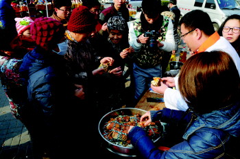 1月8日,入驻好邻居的“Hi鱼”深海水产品及黄河入海口大闸蟹在新湖南路好邻居超市门前举行品鉴活动,邀请鲁菜名厨现场为市民制作美食,让市民大饱口福。 本报记者 马志勇 摄