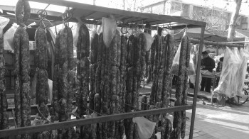新岭市场上做好的香肠挂满支架。 徐良 摄