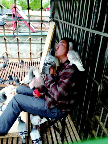 戴世斌的家距鸽棚走路也就三分钟,是日照市最好的社区,但他每天起床就到鸽棚来,一天三餐在鸽棚吃,高兴了还住在鸽棚。家里的条件和环境比鸽棚强得多,但没有鸽子陪着,他就浑身都不舒服。