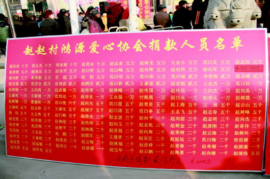 本报1月8日讯(记者 孙菲 王芳) 8日,在广大企业家的积极发动和参与下,位于博兴县兴福镇的赵赵村成立了鸿源爱心协会。截至当天上午九点,善款已突破二百万元人民币。