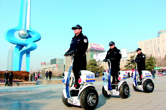 “警用巡逻平衡车特别适合在广场以及狭窄道路上进行巡逻,在道路交通不畅的情况下,能够及时到达现场。”泉城路派出所民警称,其辖区多数是狭小的胡同,用平衡车巡逻非常方便。