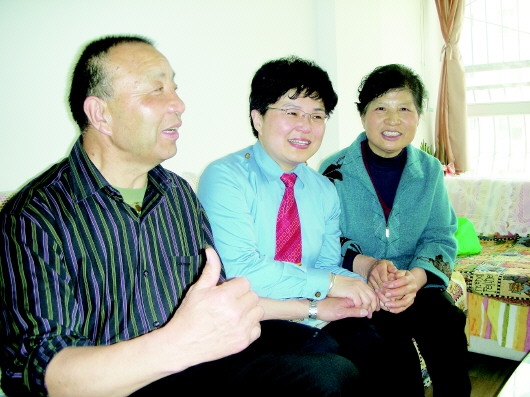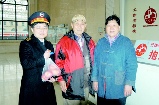 李英(中)与许多自己帮助过的旅客成为朋友。图为李英远赴银川看望自己18年前曾经帮助过的靳双鹏旅客(左一),感谢老人多年来对自己的关心和鼓励。