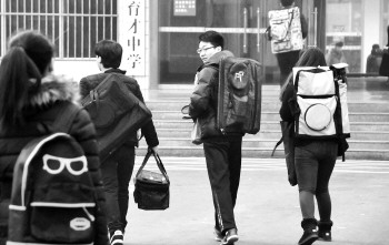 在济宁育才中学考点,考生们背着画架走进考场。本报记者 张晓科 摄