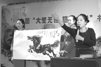 1月11日上午10点,由中国名人名家书画院主办,中国名人名家书画院烟台分院承办的“中国大爱无疆,慈善之光书画名家作品拍卖会”在开发区凤台大厦二楼举办。现场来自全国书画界名家的70余幅作品拍卖高潮迭起。据了解,拍卖的部分款项将捐助给烟台一名患有罕见血液病的两岁男童轩轩用于治疗。