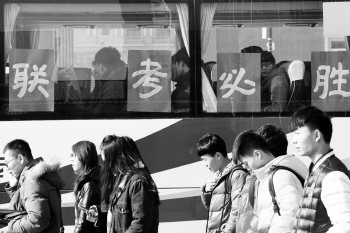 1月11日,山东省2015年美术统考开考,考试分为造型基础和色彩基础。在聊城二中考点,结束了上午考试,考生们陆续离开考场。