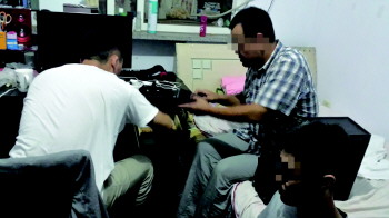 ◥民警在嫌疑人的窝点内进行搜查。警方供图