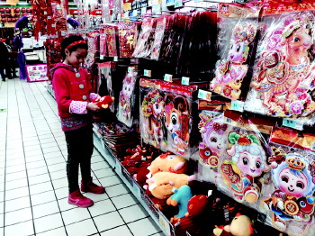 在东岳大街一超市内,各种“羊”形象的新年饰品剪纸、福贴等都被摆放在主要位置,羊的形象被做成了各种形态,动画里看到的“喜羊羊”、“美羊羊”,有五颜六色的羊宝宝,还有带着中国红元素、民族风情的生肖吉祥物。