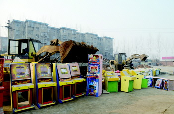 本报1月11日讯 (记者 刘光斌 通讯员 孙启昌 王东) 淄博市开展“打黄赌、铲源头”百日专项行动以来,严打黄赌违法犯罪活动。截至目前,淄博共打掉利用赌博机赌博窝点100余处,抓获违法犯罪人员380余人,收缴赌博机300余台。这批赌博机已经于9日上午由大型挖掘机统一销毁。