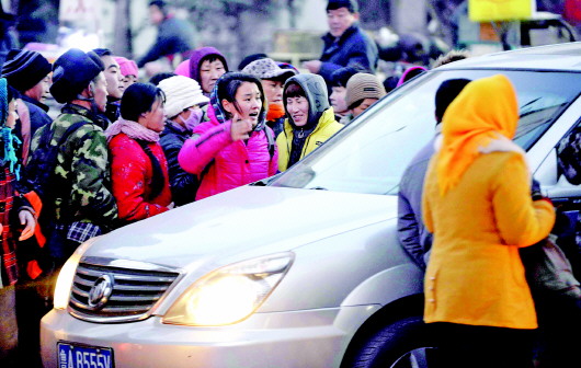 “让我去吧!”1月12日天刚刚亮,在济南全福立交桥下的零工市场,一辆车刚出现就被早早等候在一边的打工者围得水泄不通。由于农闲时节打工的人变多工钱降低,不少人40元一天就干。再加上年末不少建筑工地停工,在零工市场上,不管是本地人,还是外地来打工者,都感受到了这个“寒冬”。 本报记者 郭建政 摄