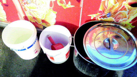 在沿街房的一家羊汤馆里,记者看到门口放了三个水桶,里面的存水只剩三分之一。“长时间不来水生意都快做不下去了。”女店主对记者抱怨,供水不及时导致生意惨淡。