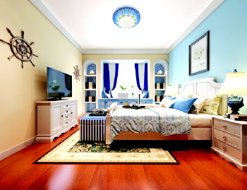 地中海风格的美,包括“海”与“天”明亮的色彩、仿佛被水冲刷过后的白墙、薰衣草、玫瑰、茉莉的香气、路旁奔放的成片花田色彩、历史悠久的古建筑、土黄色与红褐色交织而成的强烈民族性色彩。本案以黄色、白色和蓝色为主打色调,在室内布置中运用纯天然基材的小麦黄色的硅藻泥墙面及木制梁造型,深深浅浅的凹凸肌理间仿佛吐纳着谷物朴素的香气,给人带来自然和淳朴的舒适感,通过迷藏感的空间格局,提供给居者浪漫开放的心理感受。