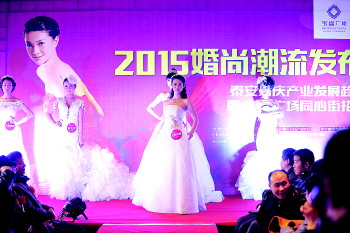 10日下午,由泰安市喜庆文化产业协会、泰安婚庆与庆典协会主办,宝盛广场同心街承办的2015婚尚流行发布会在宝盛广场销售中心举办,为来宾带来一场精美绝伦的视觉盛宴。动感电提琴演奏、唯美白色婚纱和晚礼服T台秀、热辣爵士舞蹈视觉盛宴唤起了在场观众的热情,掌声一浪接一浪。