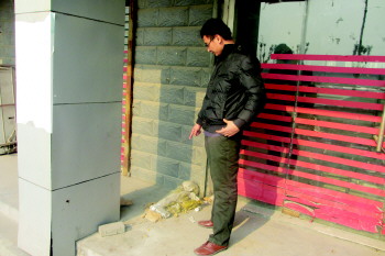 14日,淄博高新区俪园小区附近的净水机已被拆,只剩下一根保温棉包着的水管。 本报记者 刘晓 摄