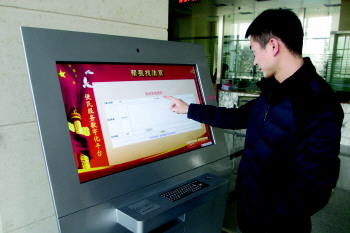 市民在立案大厅利用便民服务平台办理相关业务。 本报记者 刘光斌 摄
