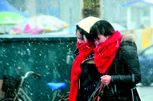 16日,随着冷空气来袭,烟台飞起了雪花,空气质量也从重度污染变优。 本报记者 韩逸 摄