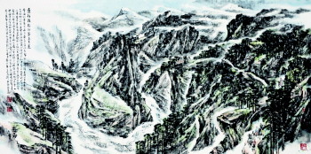 这种喜欢是有缘由的。近些年,看了不少现代人画的山水画,看的多了、久了,欣喜之余,慢慢地心里竟潜生出一种隐隐的怅惘:画面上总是似曾相识的场景,寒林古寺,山樵渔隐,描绘的是先人潇洒通脱的姿态。这些经典的画面,特有的情境,经过历代画家的反复的皴擦敷彩,已经有些程式化的意味。高山尚在,流水绝响,中国画是写实表意的艺术,缺少了活在当下的真性情,笔墨渲染的就会是一派虚空。