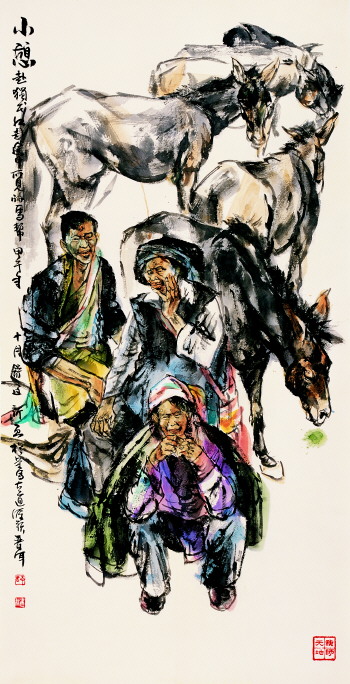 在艺术追求上,舒建新注定是一个“不安分”的人。就在人们看惯了他笔墨中的大山大水的时候,他却又来了一次全新的“华丽转身”,把人物从山水中独立出来,形成了一种融写生与写意为一体、以云南边陲民族人物为主体的“新水墨写生”。