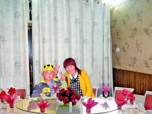 儿子七周岁生日,王女士与他一起合影。 (读者供图)