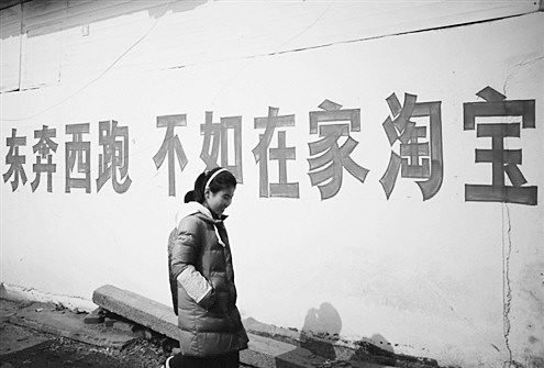 如今农村遍布淘宝的刷墙广告 (资料片)