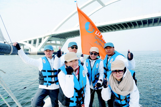 2015年厦门新年帆船赛中,山航厦门分公司“逐梦未来”帆船队凭借出色表现获得公开组第5名的佳绩,并得到了赛事举办方的高度评价。“山东航空 逐梦未来”帆船队由山航厦门分公司飞行员、空姐等员工自发组建,组队并投入训练不足半年。参赛前半个月,团队利用休息时间进行了高强度的训练。比赛中,团队成员每人仅靠一瓶水和几片面包连续9个小时在海上驰骋,充分展示了个人风采和团队精神。 通讯员 陶善武 摄