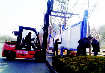 为方便市民候车,1月18日,天衢东路上的公交车站点开始安装候车亭。 本报记者 马志勇 摄