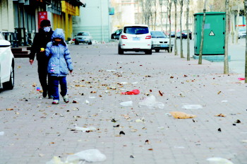 1月18日,德州多个县市出现7级以上的阵风,气象部门发布大风蓝色预警。下午,在董子文化园大风将大量落叶和纸屑卷起,吹送到人行道上。 本报记者 马志勇 摄