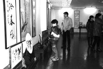 影雕艺术是利用黑白明暗成像的原理,在纯色大理石上,用特制“笔头”雕刻出疏密粗细、深浅不等的线条来表现图像的一种艺术。此次展览共展出崔华的影雕作品50余幅,将持续到3月17日。 本报记者 张永斌 摄影报道