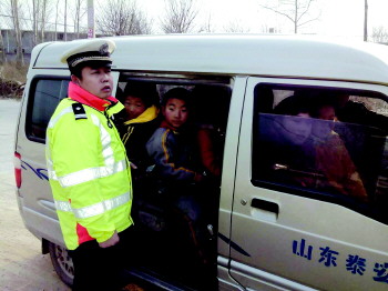 16日一早,泰安交警城东大队副大队长陈俊岭带领民警到达省庄镇中心小学、邱家店二中、邱家店十三中治理点。通往省庄镇中心小学路上,一辆红色中巴驶入民警视线,民警发现这辆车上全是学生,细数有30人。车上学生绝大多数是省庄镇中心小学的学生。驾驶员称,自己这辆车共19座。