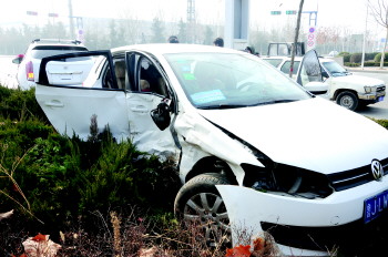 李先生介绍,他当时开车自西向东行驶,车上有五个人,“过路口时是绿灯,正往前走,忽然被别的车撞了,等我反应过来,车已经被撞到绿化带里。”李先生说,坐在副驾驶的同事被挤住,无法动弹,被随后赶来的医护人员救出,连同后座上三名同事,一起送往医院接受检查。