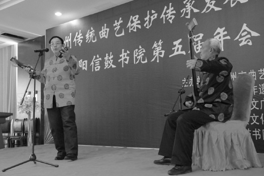 10日,滨州传统曲艺保护传承发展论坛暨阳信县鼓书院第五届年会成功举办,阳信县传统曲艺25名老艺人齐聚一堂,登台献艺,相互切磋,共商传统曲艺保护传承发展大计。图为阳信县鼓书院市级非物质文化遗产毛竹板书传承人李鸿彬说唱传统曲目《平原作战》。