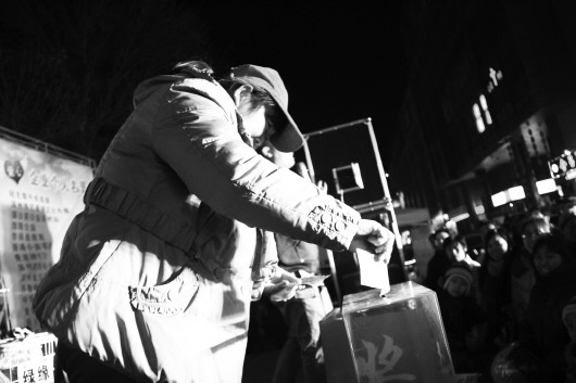 17日,在渤海国际广场上贴手机膜的赵先生以100元买下一幅字画捐赠善款,18日晚上,同样摆摊贴膜的李女士以1000元拍下了一辆电动车,将善款投入了捐款箱。而记者在采访中却惊奇地发现,两位贴膜的爱心人士竟是“娘儿俩”。