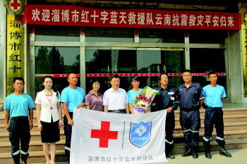 去年,淄博市红会救援队参加抗震救灾归来(资料片)。