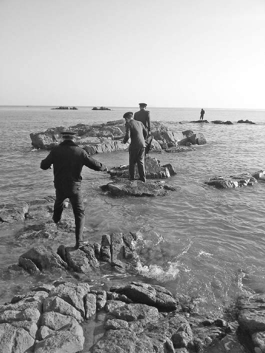 “我们到达现场后,发现小王被困在距离岸边大约150米远的礁石上,礁石周边都被海水淹没了。”中韩边防派出所出警民警贾汶昊告诉记者。