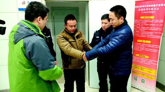 历下交警将嫌疑人移交给从东营赶来的便衣警察。