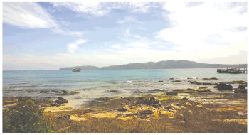 船行至中途,在一个小岛边停下来。导游告诉我们,船家是让大家体验一下跳水和游泳的感觉。果真有跳台从船上伸出来,差不多有十几米高度,陆陆续续有爱玩的游客踏上跳台跃入大海。我也鼓起勇气尝试了一把跳水的滋味,从如此高的高度跳下去,可不是件容易的事,屁股和肚子被水击打得有点痛,我不免感慨跳水运动员的不简单。午餐是在船上吃的,用过中餐后,我们的船也靠近了刮龙岛。我没有过足游泳的瘾,和几个喜欢游泳的游客索性游了过去。水是温温的,很是舒服。大约游了五百米的距离,我们便靠岸了。脚下是洁白的沙子,细细的软软的,这里的海滩很像夏威夷的海滩,但又没有夏威夷的喧闹,基本保持着原始的状态。来这儿的大都是欧美人,找一个海边的茅草房住下来,手机是没有信号的,捧一本书,晒着太阳,吹着海风,真正是神仙般的享受。我们在一个栈桥上拍照,栈桥的尽头是一个茅草屋,那一刻又找到了在马尔代夫的感觉。时间关系,我们只能玩到下午三点多,恋恋不舍地走上甲板,又是苍茫的大海,又是清爽的海风。阵阵动听的吉他声和着悦耳的童声,从船头传来,原来是几个马来西亚小姑娘在开party。她们利用假期在老师的带领下游览西港。虽然听不懂歌词,但孩子们天真的表情,纯真的童声,美妙的和声,令我们如痴如醉,充分地感受到音乐的无国界魅力。天色渐渐暗下来,继而有雨丝飘来,但没有人离开甲板。临近黄昏,我们终于欣赏到了西港海上日落的灿烂、壮丽、辉煌、震撼……靠近太阳的是燃烧的血红的彩霞,云层厚的地方则是灰黑,天空和大海,一边是燃烧,一边是静默。
