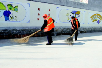 ▲两名保洁员每天把街道打扫得干干净净。