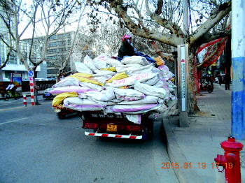 19日,交警城东大队在东岳大街青年路口开展“代步车”专项整治工作,民警刘军对过往车辆进行排查时,一辆拉塑料包装袋的红色三轮车驶入视线,该车严重超高、超宽、超长,民警立刻拦下。