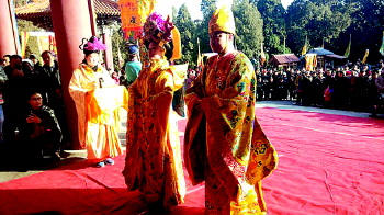 19日下午3点,封禅祈福演出在岱庙天贶殿前拉开序幕。封禅大典演员们扮演的帝王、皇后共同迎接众宾客,之后走上大殿,带领游客一起封禅祈福,祈福风调雨顺、国泰民安、幸福美满。