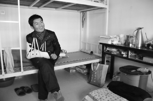 石鹏鹏住在干净的宿舍,他说他很知足。