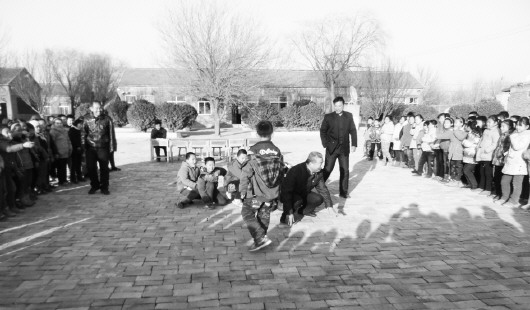 无棣车王镇小学把12月定为游戏节,专门购置了沙包、长绳、跳绳、羽毛球、毽球等游戏器材,成立了游戏社团,并利用大课间时间开展丢手绢、拔河、掷沙包和卷白菜、捞大鱼、斗鸡等20余项趣味传统游戏比赛,以提高学生们自觉锻炼身体的意识。