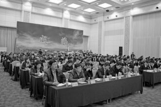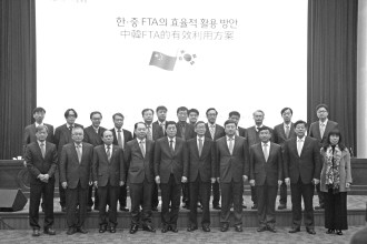 ▲20日,中韩自贸区说明会现场,与会专家、学者合影留念。