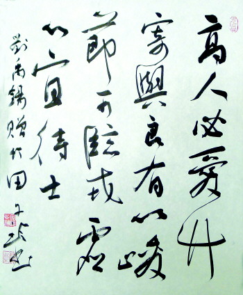 公益活动,让我心有所安。 D:书法创作,纯属个人行为。需要不断地追求高水准的艺术修养和书法技能。而书法艺术太过抽象,所以书法创作到了一定的水准。真有高处不胜寒之感,曲高和寡,犹如置身半空,孤独之感由此而生。是继续追求还是转舵?