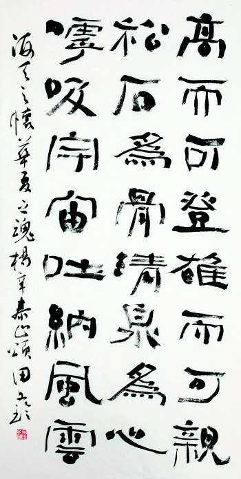 A:所谓创造即是对原有存在的重新组合。这必须基于对原有存在的深入研究。比如汉堡的诞生。然而书法艺术的创作并非像制作汉堡那样简单,而是需要对古碑帖的笔法、字法、章法乃至墨法的深入研习,然后进行有机的、顺乎自然的融合。这很像中国人吃的饺子,饺子是将所需的主辅料进行充分均匀地搅拌融合之后而成,而且不同的主辅料的融合,会产生不同的营养、味道和特点,甚至不同比例的融合也会产生不同的口感效果。书法创作亦然。