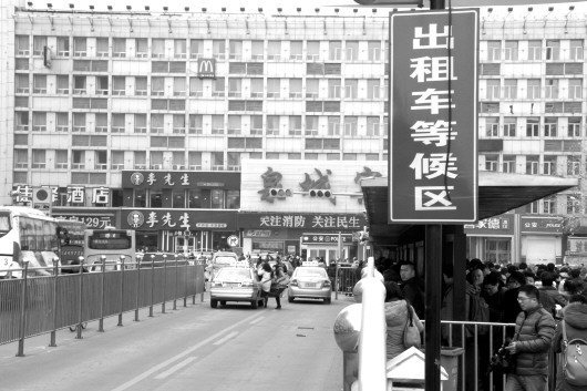 受专车等影响,平日里出租车扎堆的济南火车站广场日前也出现打车难的现象。(资料片)
