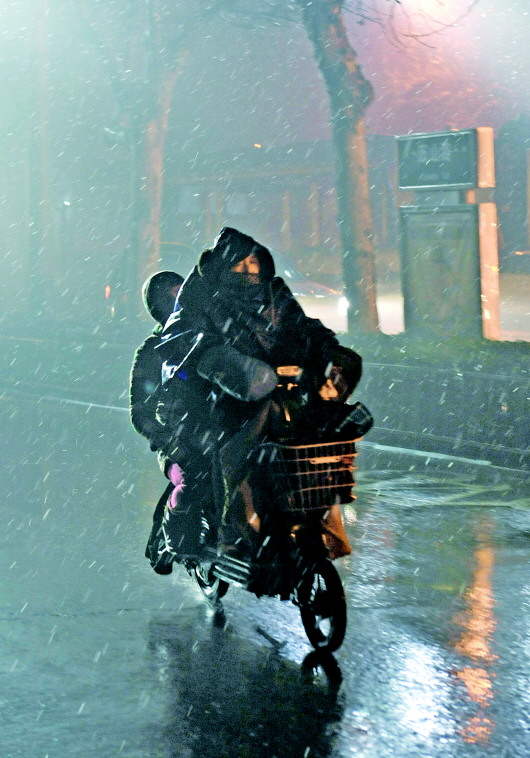 24日晚,济南市区普降雨夹雪,这是济南今年入冬以来首场降雪。 本报记者 徐延春 摄