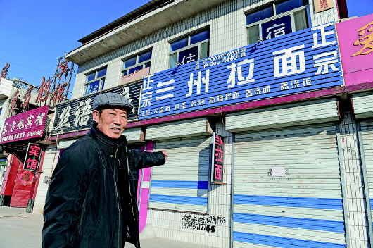 ◥李长河告诉记者这是李金盘的拉面店。本报记者 周青先 摄
