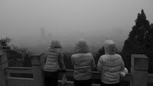 ▲24日,济南市区AQI一度超过400,达到严重污染。从千佛山上看下去,市区一片朦胧。 本报记者 周青先 摄