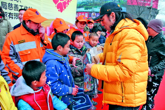 24日上午,几家爱心企业邀请“零点乐队”作为爱心大使,在泉城路一起向贫困环卫工人子女献爱心。来自济南市城管局机扫大队的100名环卫工子女领得了崭新的书包和保暖外套。