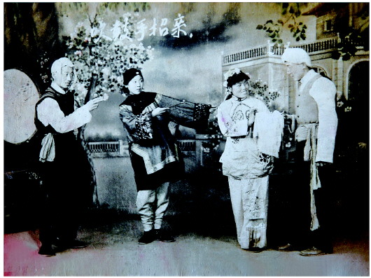 这张老照片是《吹鼓手招亲》中的一个剧照,反映了年轻男女冲破封建旧思想,反对包办婚姻,敢于追求婚姻自由的精神,拍摄时间是20世纪60年代。一晃半个世纪过去了,能保存下来这张珍贵的照片真的很难得,您能认出照片中四位演员都是谁吗?从左至右分别是:姜长友、董凤云、曹玉梅、张兴叶。