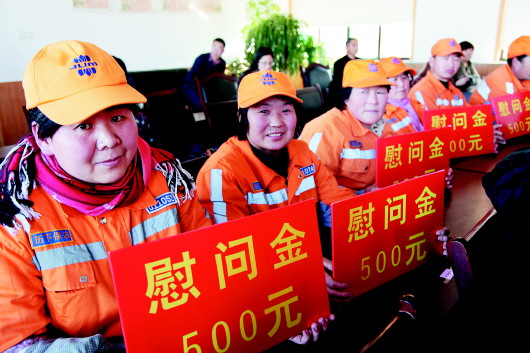 每位环卫工人获得500元慰问金。 本报记者 肖龙凤 摄 通讯员 刘亚男 摄